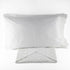 un ricamo in rilievo su un delicato tulle, lo stesso pizzo impreziosisce le due federe.