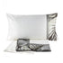 un lenzuolo piano con balza in stampa digitale e due federe con stampa digitale.