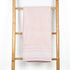 Ogni asciugamano è impreziosito da una balza ricamata con motivi geometrici, che aggiunge un tocco di eleganza al tuo bagno.