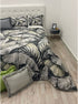 la trapunta ha una una stampa a palme tropicali,